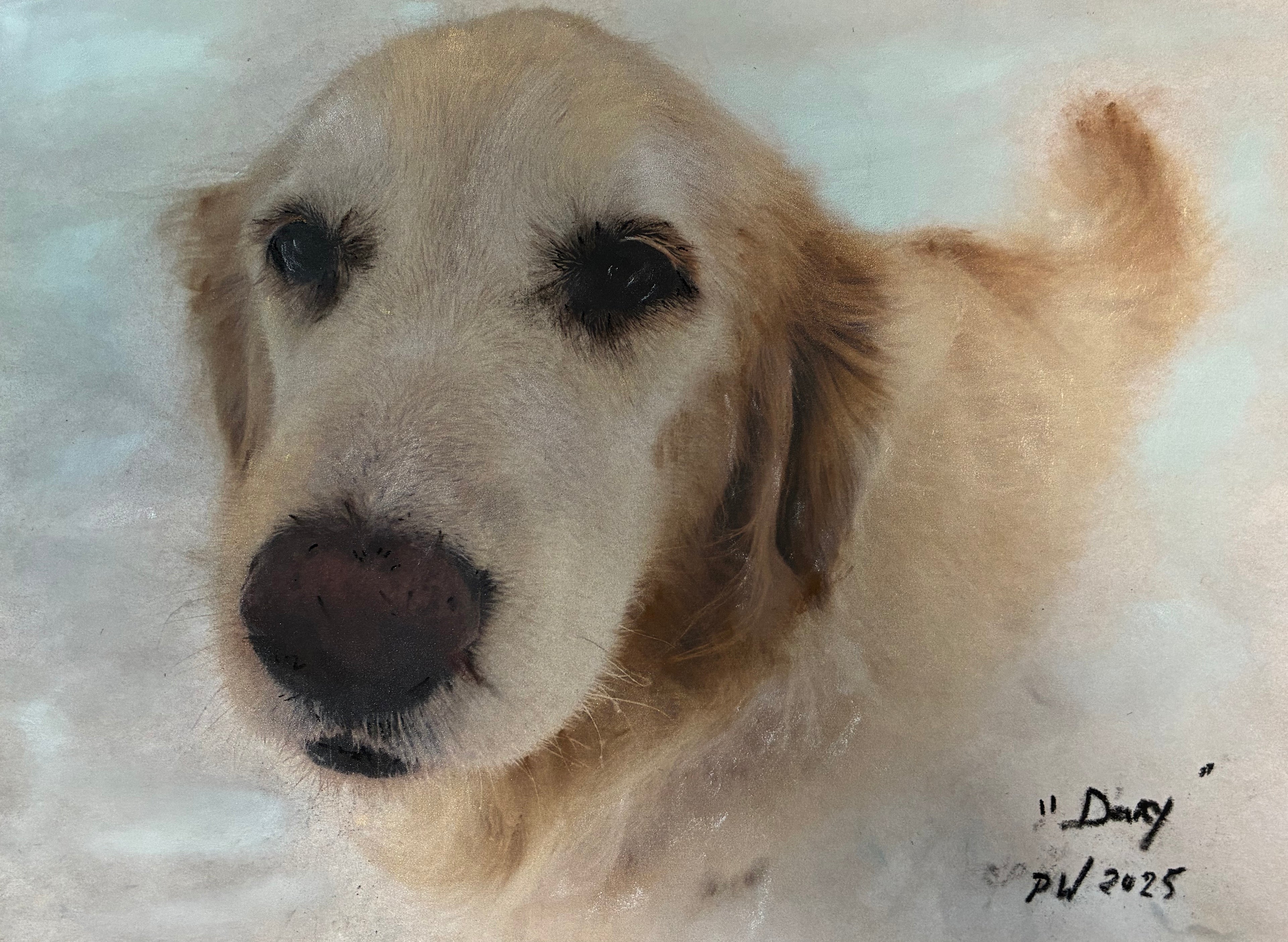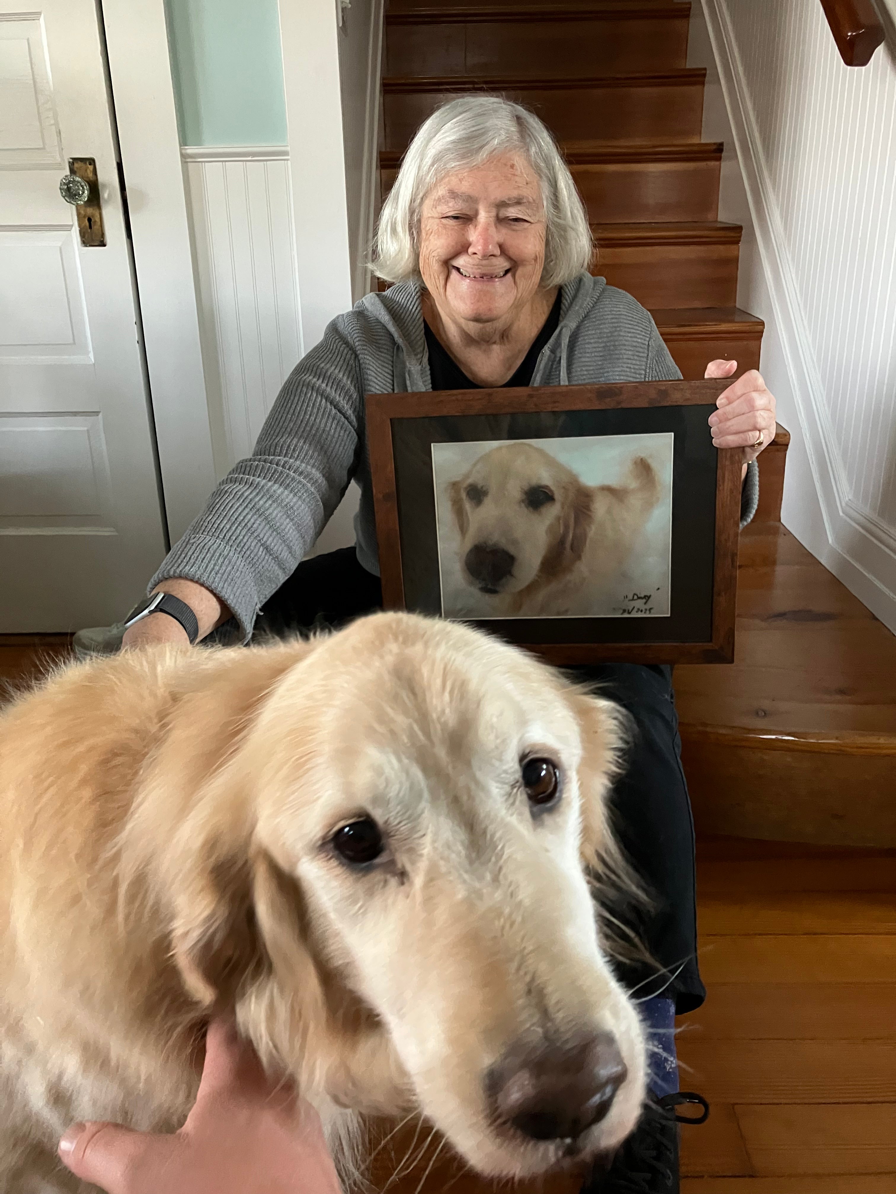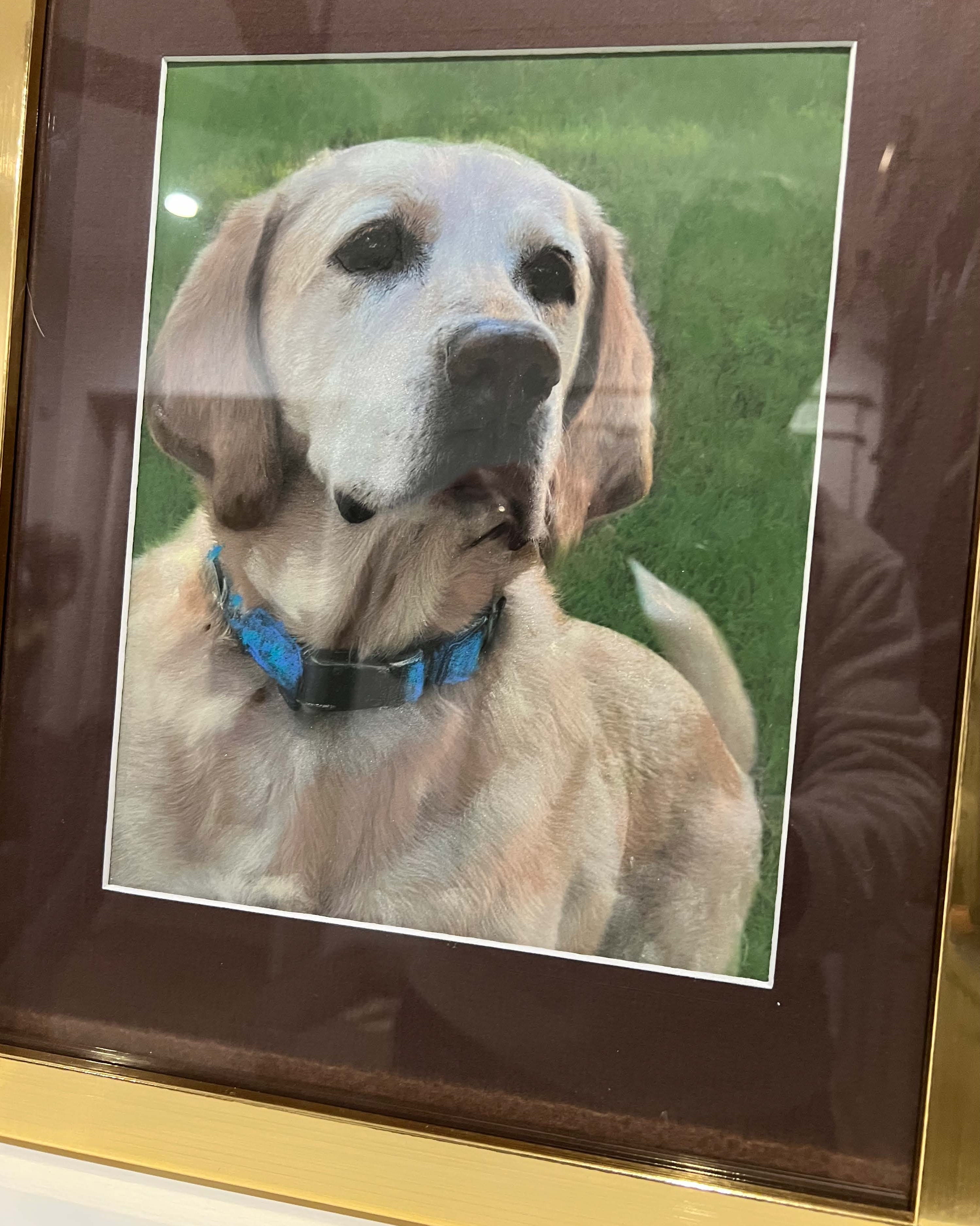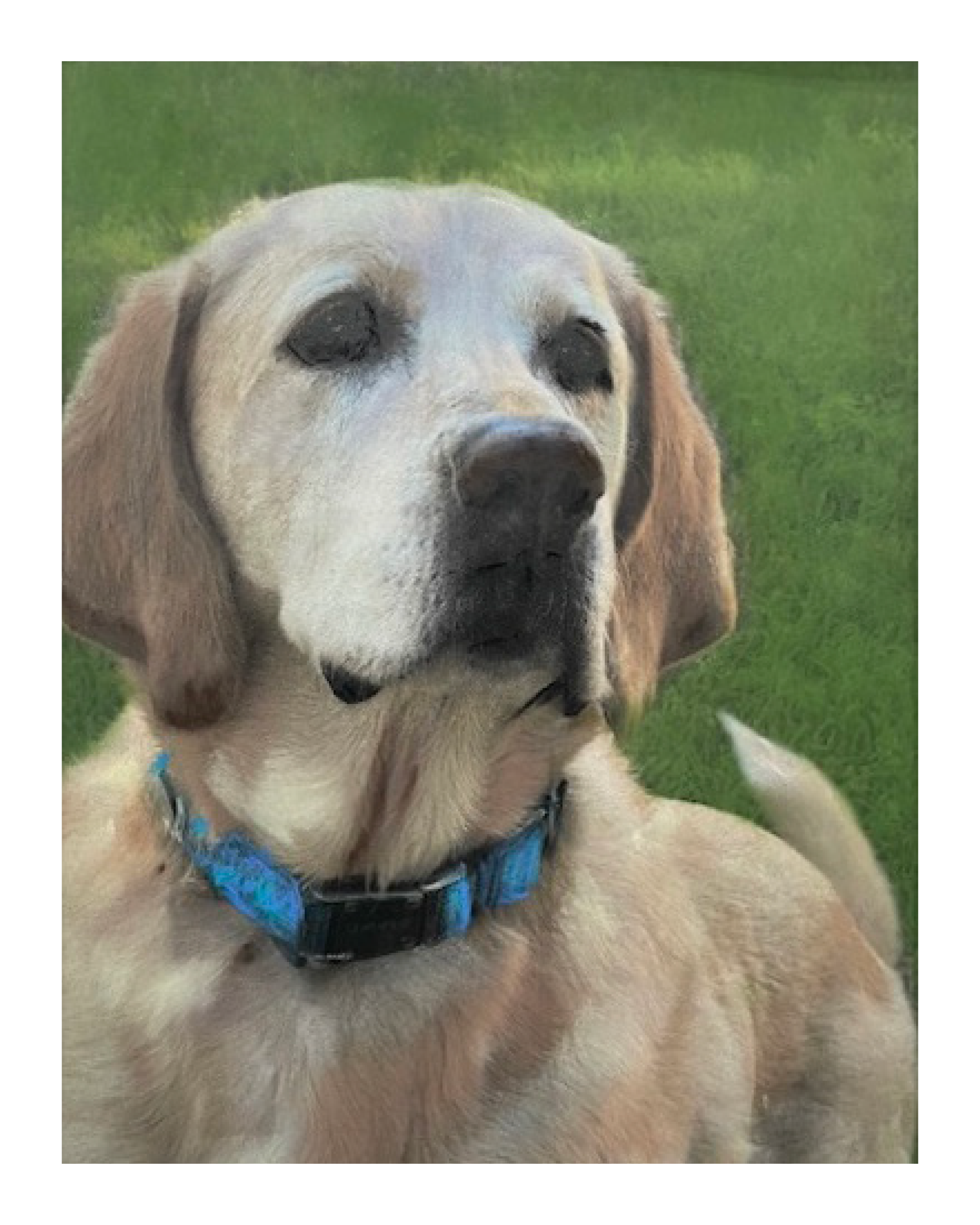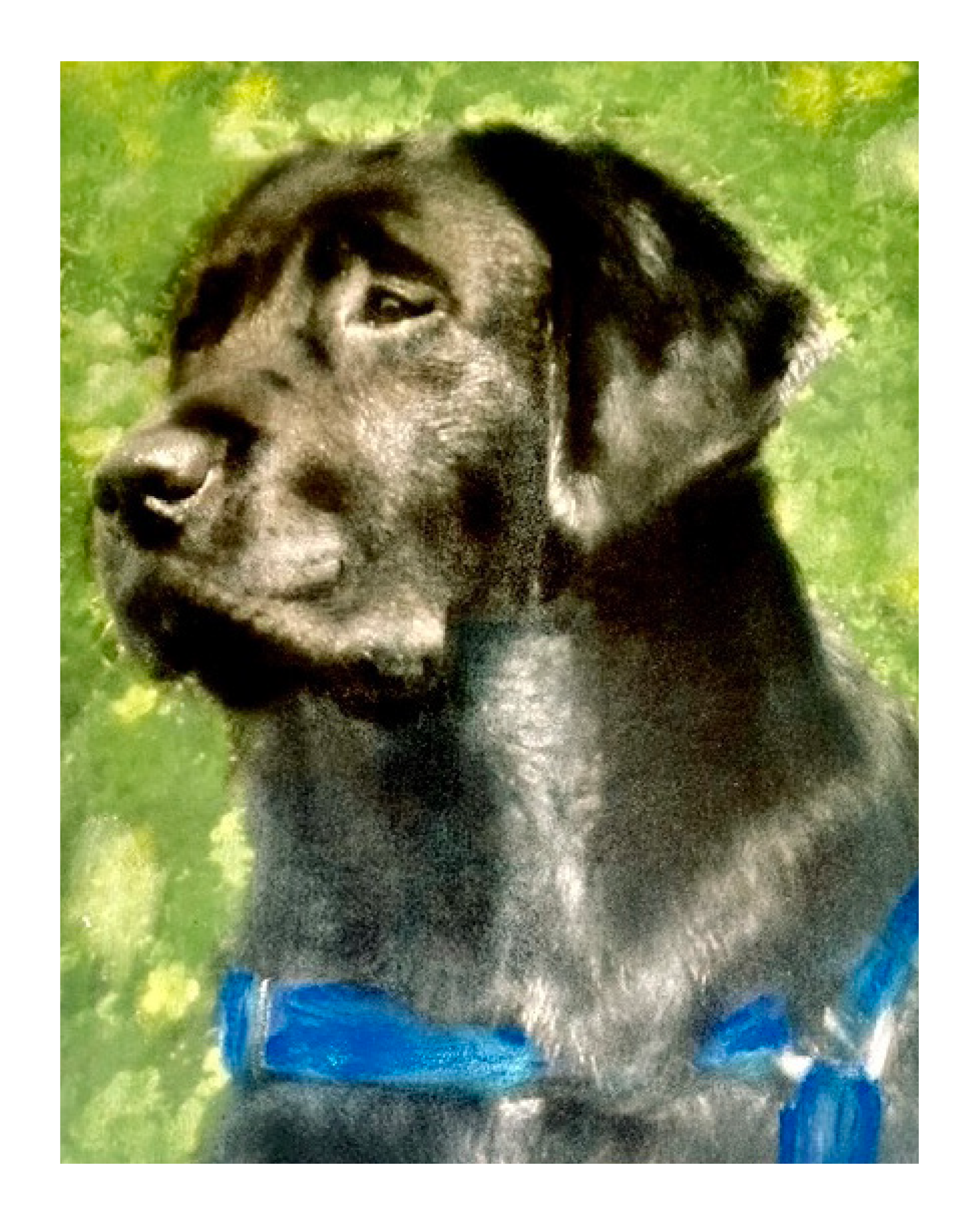 "Pebbles painting of my Labrador Retriever, Duke, is amazing. At first glance, I thought it was a photograph. On closer inspection of the details around his eyes did I learn it was a painting. It is cherished by me, it is on my desk, and it’s like Duke is sitting there waiting to play and tell me how much he loved me.!"