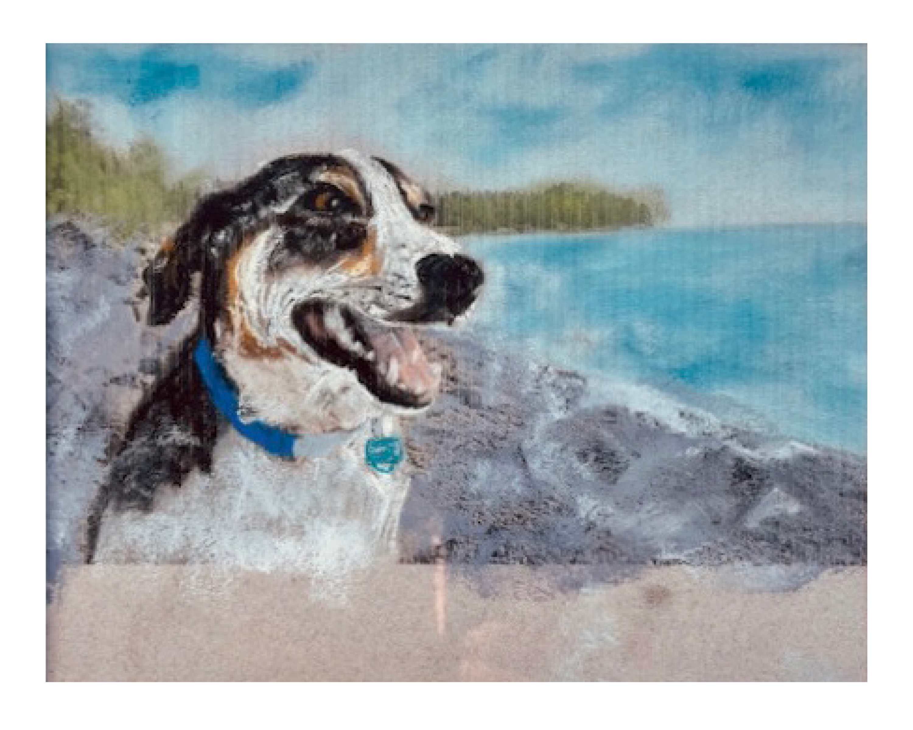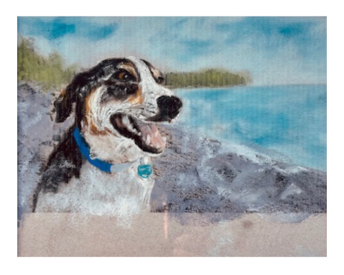 "Pebbles perfectly captured the joy my dog Biscuit felt being at the lakeshore with me. I can feel that joy every time I look at the painting"